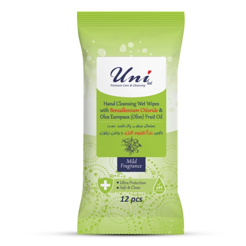 دستمال مرطوب ضد عفونی کننده دست یونی لد مدل آنتی باکتریال حاوی روغن زیتون 12برگی جیبی