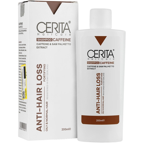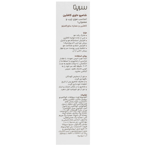 شامپو تقویتکننده و ضد ریزش سریتا مدل کافئین مناسب برای انواع مو حجم 200 میلیلیتر