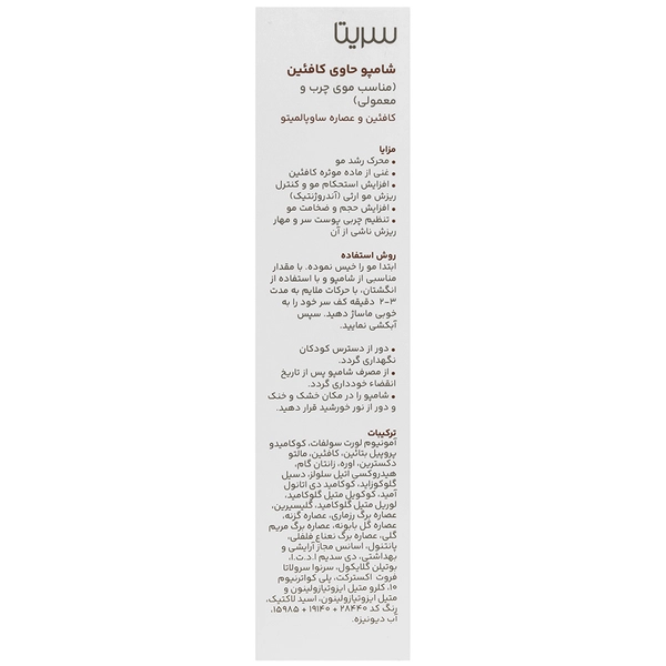 شامپو تقویتکننده و ضد ریزش سریتا مدل کافئین مناسب برای انواع مو حجم 200 میلیلیتر